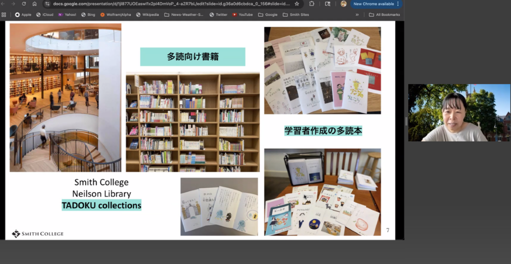 「実践パート」では、アメリカ・スミス大学と補習校でJSLや継承語の子どもたちに多読を取り入れている高橋さんの話を伺いました。