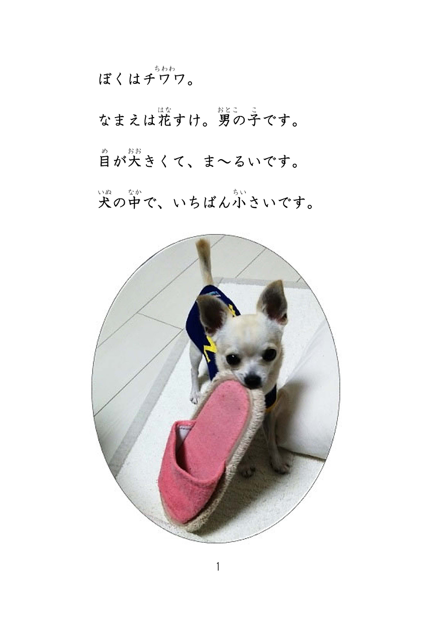花すけはちいさいです。わたしはいぬがだいすき。