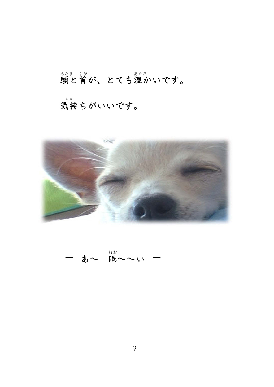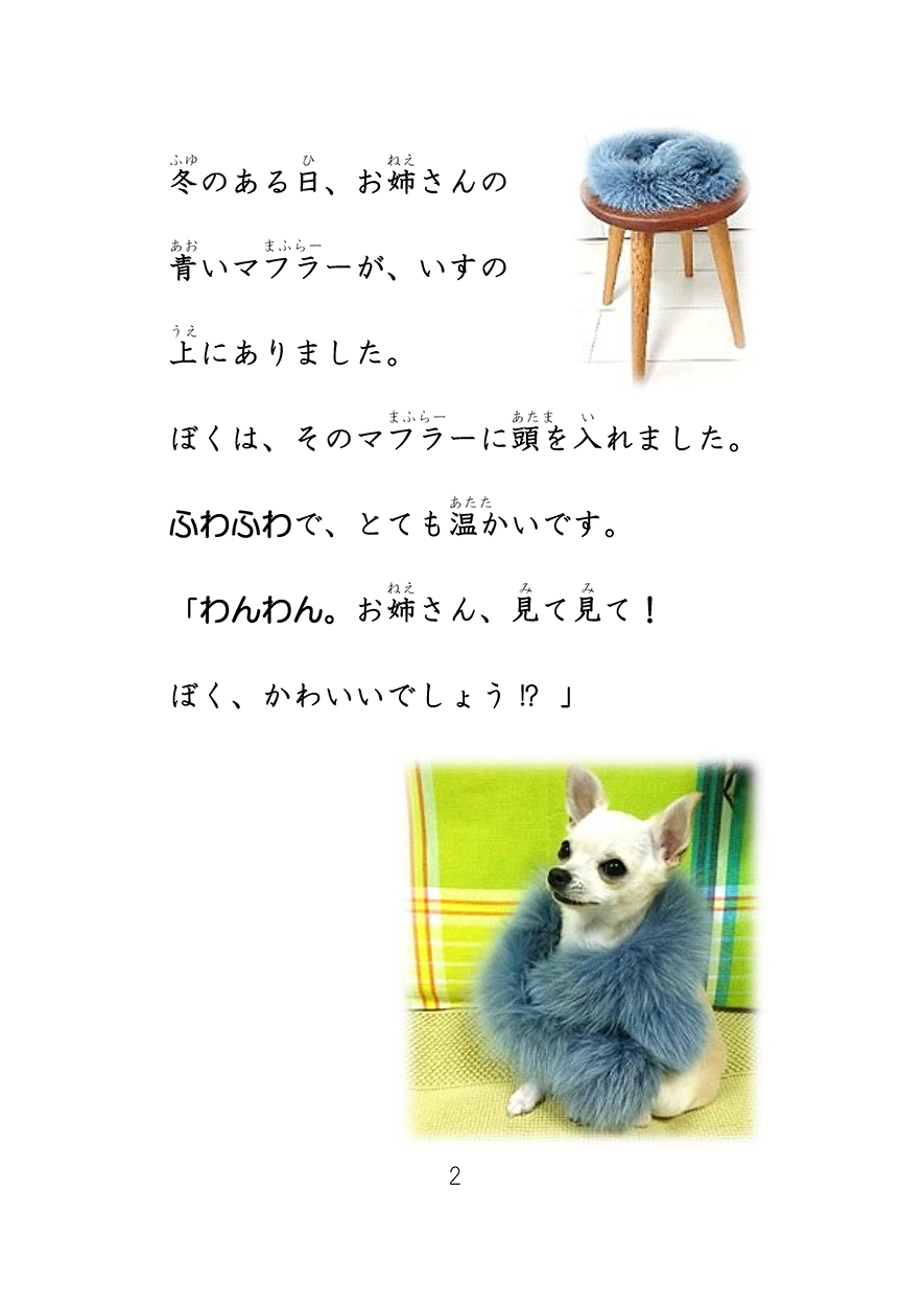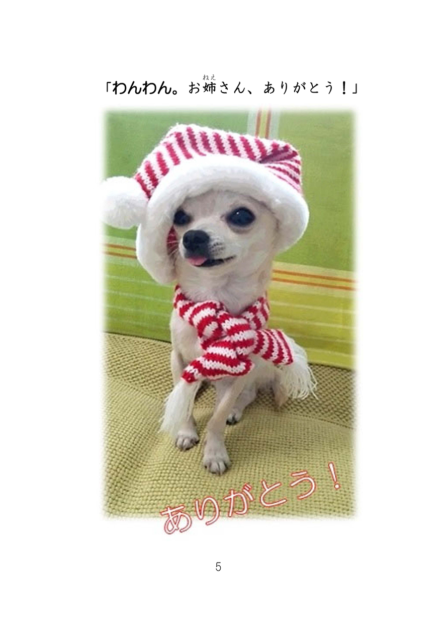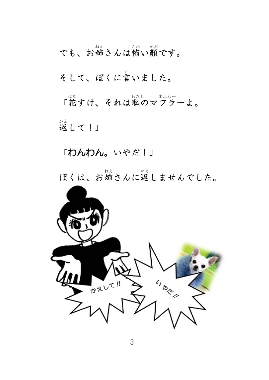 ふりがなは小さすぎるので、見えていなかった。でも、いい本ね!チワワの花すけはかわいい。丸山さんのチワワですか?